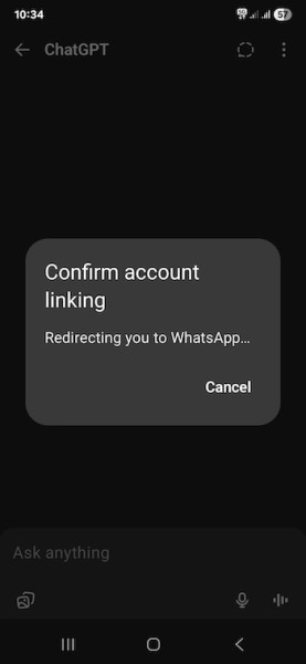 Da biste to učinili, jednostavno pošaljite sljedeću poruku ChatGPT-u unutar WhatsAppa: "Link my WhatsApp with ChatGPT" (Poveži moj WhatsApp s ChatGPT-om)