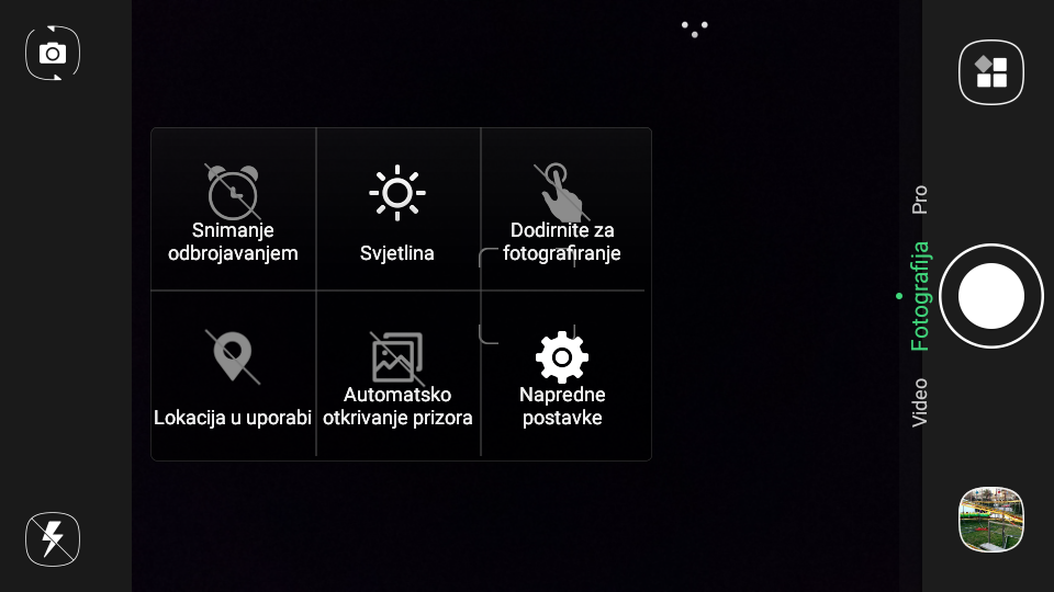 Uređaj nudi klasično automatsko snimanje, video i Pro, koji omogućuje par dodatnih postavki (ISO, svjetlina itd.) Imamo još i način scene, samookidač, HDR i uobičajene filtere.