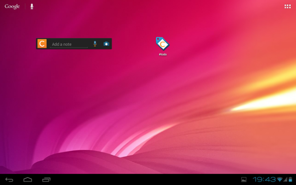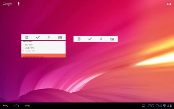 Dostupna su dva widgeta – jedan kao skup prečaca, a drugi kao widget izmjenjive veličine u kojem se prikazuju sve bilješke.