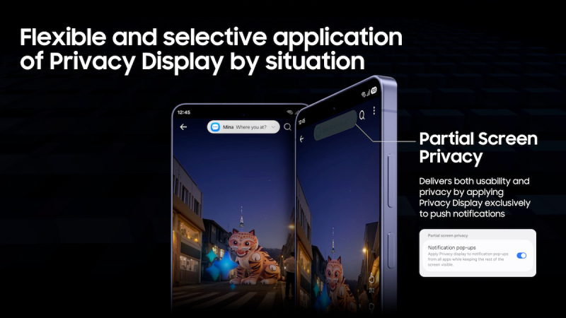 Pro savjet: Iskoristite Side button shortcut. Idite u Settings > Advanced features > Side button > Double press i tamo dodijelite Privacy display. U javnom prijevozu ili gužvi, jedan brzi dvoklik fizičke tipke trenutačno aktivira zaštitu od „gledanja preko ramena“. Također, opcija Partial screen privacy omogućuje da primijenite ovu zaštitu samo na notifikacijske pop-upove, dok ostatak zaslona ostaje normalno vidljiv, što je idealno za pregledavanje bankovnih izvoda dok su vam drugi prozori otvoreni.