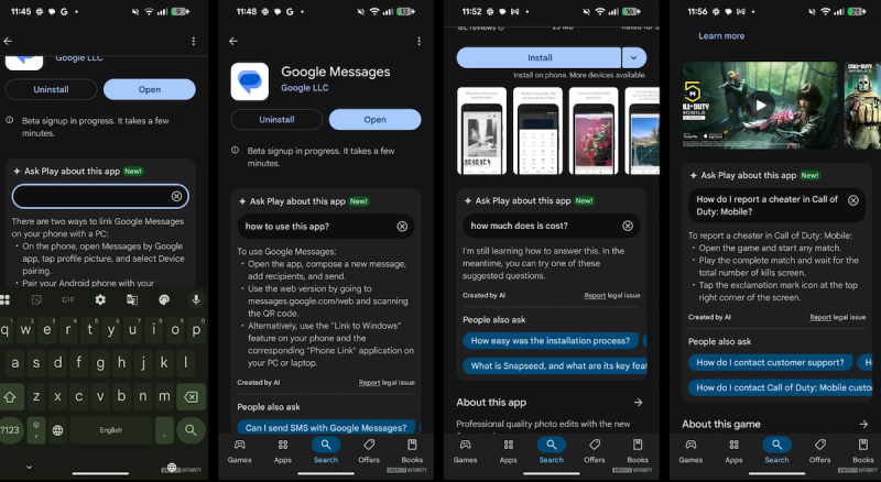 AI pokretan Geminijem zatim generira korisne odgovore, uključujući savjete o korištenju, objašnjenja funkcionalnosti i druge praktične informacije. Funkcija je posebno korisna za nove korisnike aplikacija ili one koji traže određene informacije bez napuštanja Play Storea.