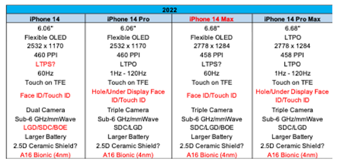 Što se procesora tiče, bilo je govora da će novi A16 biti izrađen u 4 nm procesu, no prema nekim drugim izvorima, Apple navodno ostaje na 5 nanometara, što sugerira da kvantne skokove u performansama ne treba očekivati. Također, mnogi pouzdani izvori tvrde da će novim A16 biti pokretani samo Pro modeli, dok će osnovni zadržati A15 procesom iz iPhonea 13.