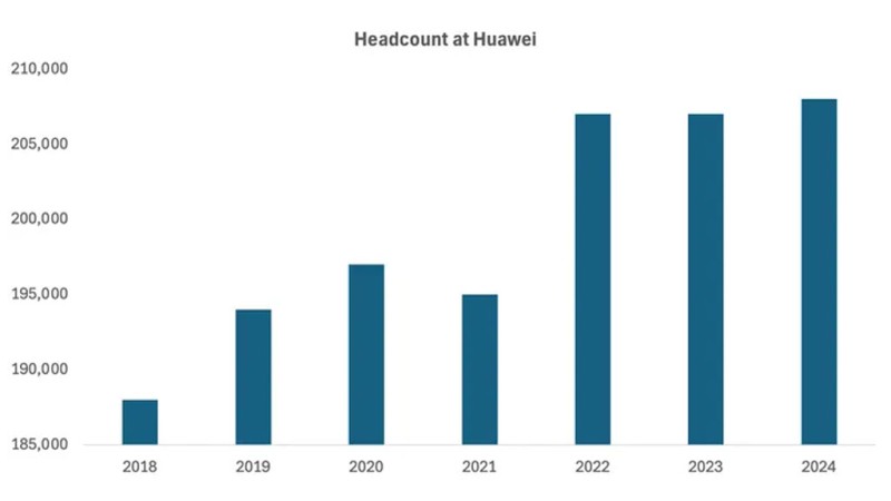 Za razliku od europskih konkurenata, Huawei bilježi snažan rast u sektoru istraživanja i razvoja, unatoč američkim sankcijama. U posljednje dvije godine, kineski tehnološki div zaposlio je dodatnih 33.000 stručnjaka za R&D, jasno pokazujući da ulaže u inovacije. Ukupan broj zaposlenih u tvrtki povećan je za 1.000, dosegnuvši 208.000, što je 11.000 više u odnosu na 2020. godinu kada je Huawei ostvario svoje najveće godišnje prihode.