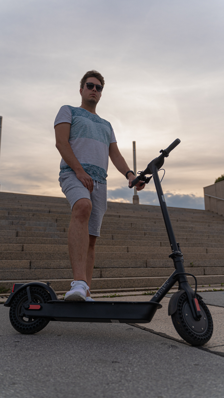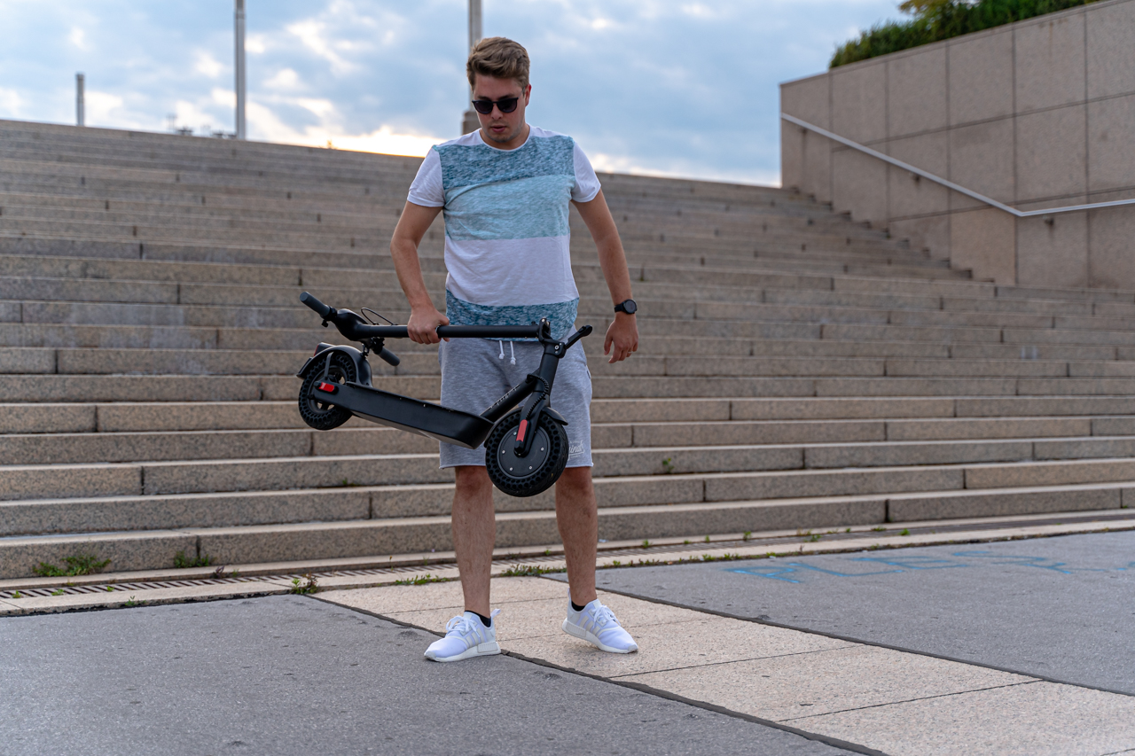 Nego kako se voziti? Pa zapravo je ovo po mom iskustvu vrlo zgodna igračka za specifičnu namijenu. Redovno sam bio brži od biciklista jer se oni prosječno voze oko 20 na sat, a istovremeno sam i u određenim situacijama mobilniji zbog užeg kormana od onog na biciklu. No romobilu smetaju bilo kakva oštra uzvišenja, poput rubnjaka uz cestu i osim ako nije napravljeno ulegnuće, morat ćete sići s romobila da biste se popeli. Teoretski, možete vi i njime i poskočiti, ali velike su šanse da će vam se takvim stilom vožnje romobil raspasti prije vremena, a i vi skupa s njim.