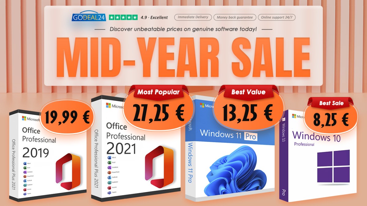 Pripremite se za uzbudljivu šoping avanturu jer vas Godeal24 uvodi u dugo očekivanu veliku rasprodaju sredinom godine od 27. svibnja do 9. lipnja! Pridružite se Godeal24 jer lansira izvrsne ponude za širok raspon Microsoft licenci. Ostvarite doživotni pristup Officeu 2021 Pro za samo 27,25 €. Ako imate više računala, preporučujemo da kupite Office 2021 Professional 5 PCs Bundle, po cijeni od 17,25 € po računalu. Uređujte dokumente, stvarajte proračunske tablice i dizajnirajte projekte. U skladu s izvrsnim paketom za produktivnost, za 13,25 € dobivate legalni ključ za Windows 11 Professional. Održavajte svoje računalo ažuriranom nadogradnjom na najbržu i najsigurniju verziju Windowsa. Više popusta na MS licence, do 60% popusta! Kontaktirajte tim korisničke službe koji radi 7/24 sve dok vam je potrebna pomoć.