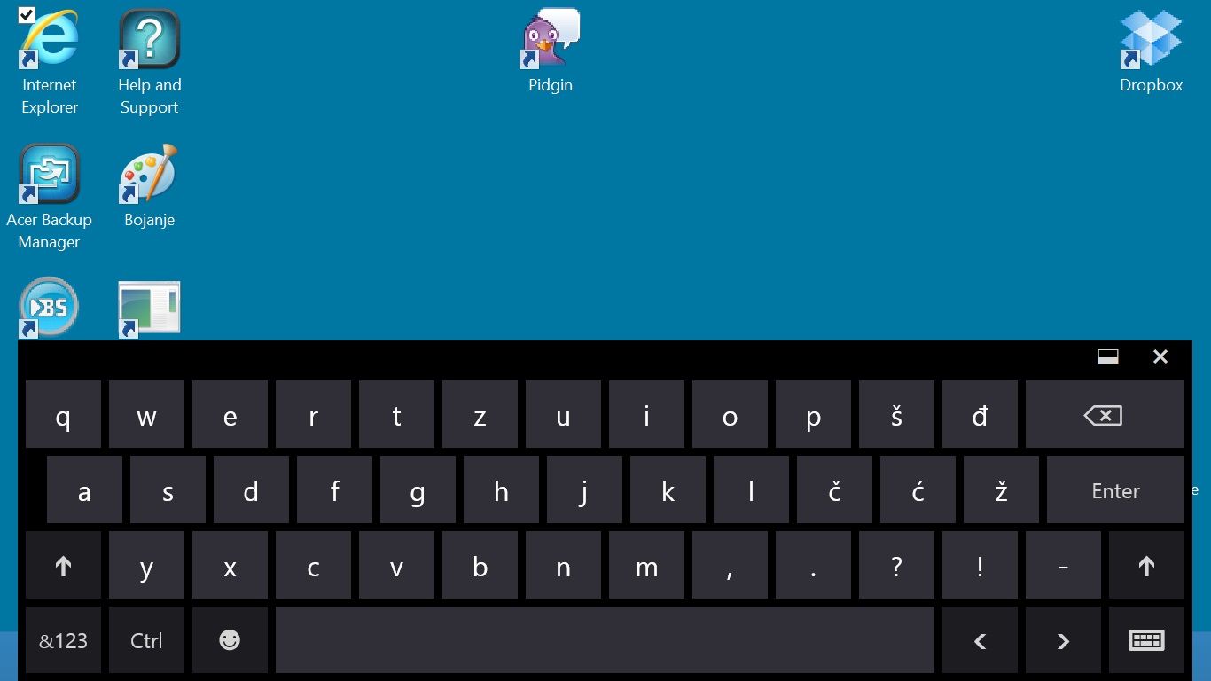 Ako nemate tipkovnicu, na raspolaganju vam je i dalje ona virtualna (softverska) koju jednako možete koristiti na Metro i desktop sučelju.