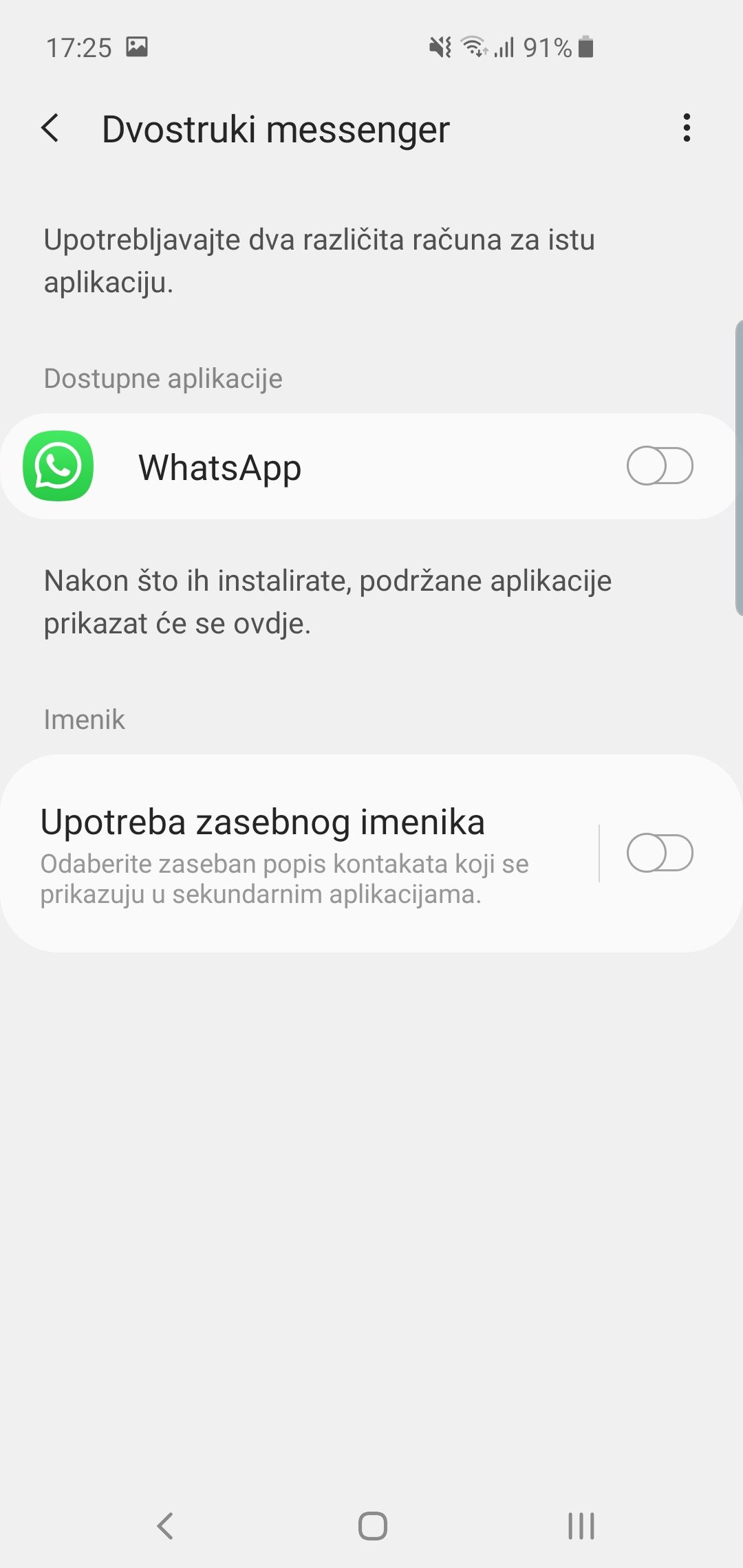 Tu ćete još pronaći i opcije za dvostruki messenger, koji će vam dopustiti da na istom uređaju imate dva WhatsApp ili Viber računa, pod uvjetom da imate mogućnost korištenja dvije SIM kartice istovremeno.