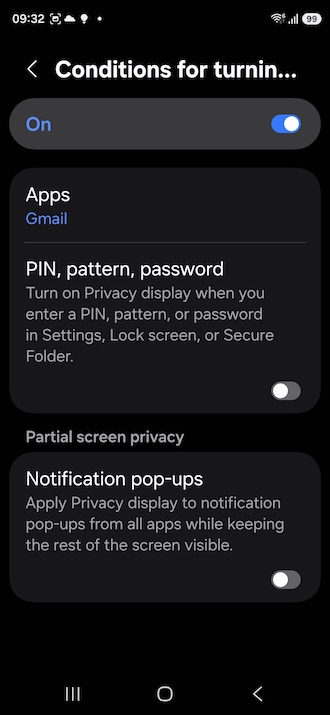 Glavna prednost ove značajke u odnosu na fiksne zaštitne folije je njezina selektivnost. Sustav može automatski aktivirati zaštitu isključivo u kritičnim trenucima, poput unosa PIN-a, lozinke ili prikaza obavijesti. Iako je trenutno ograničena na instalirane aplikacije uključujući i Googleove (Gmail, YouTube, Photos i sl.), podrška za vanjske je u planu. Dok se ne proširi na ostale, značajku ćete morali ručno uključivati i isključivati po potrebi, što i nije nekakav problem.