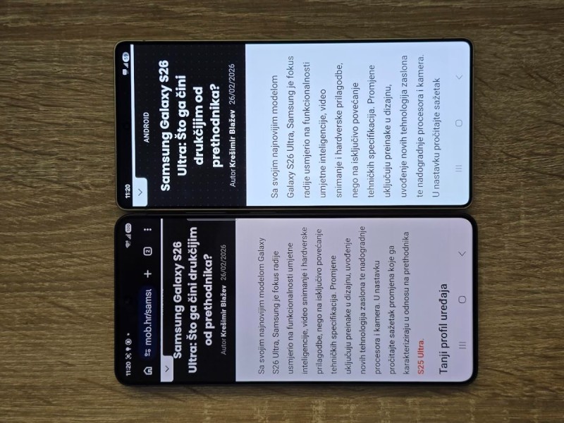 Druga ključna karakteristika zaslona S26 Ultre je anti-reflektivni sloj, kojeg smo upoznali još na S24 Ultri. Ovo je možda još jedna značajka za koju ne znate da vam je potrebna. Naime, kad se nakon korištenja takvog zaslona odjednom vratite na iPhone ili mnoge Android flagshipe, shvatite koliko vam anti-reflektivni zaslon nedostaje. I to ne samo pod udarom sunca, već i pod umjetnim osvjetljenjem.