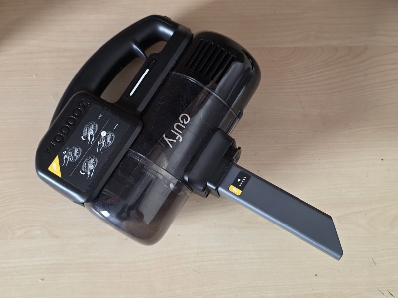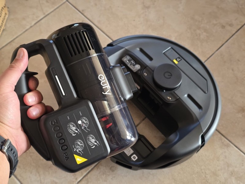 Tu sada na scenu stupa ona transformacija s početka teksta. Središnji dio, koji je ujedno mozak, baterija, spremnik i pokretač cijelog sustava, jednostavno izvadite iz kućišta i nataknete na štapni dio. Iznenadilo me koliko je taj dio, unatoč svemu, lagan, a šlag na kraju je što usisna snaga u takvom načinu skače na 30.000 Pa. Jasno, i baterija će se u tom slučaju potrošiti ranije, ali će biti sasvim dovoljno da prođete spomenute dijelove stana i eventualno dodatnu sobu u kojoj ste robotu eventualno zabranili ulaz. Ostat će struje i za usisavanje siceva auta, u kojem ste noć prije mrvili burek. Naime, onaj štap možete skinuti i nataknuti manji, odnosno kraći, pa tako Eufy E20 postaje i ručni usisavač za kauč, fotelju, ladicu, stol, kaput i mačku. Ovdje mislim na njenu kratku dlaku nakon što vam se olinjala po kaputu, ali ako imate dugodlakog psa, izbjegnite tu disciplinu.