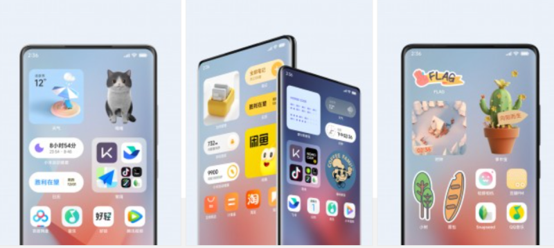Dizajn MIUI 14 nadogradnje sadrži prilagodljive mape s normalnim i velikim ikonama i nove opcije widgeta različitih oblika i veličina. Jedan od neočekivanijih novih dodataka u MUI 14 su widgeti za cvijeće i kućne ljubimce s animiranim likovima nalik Tamagotchiju koji žive na vašem početnom zaslonu.