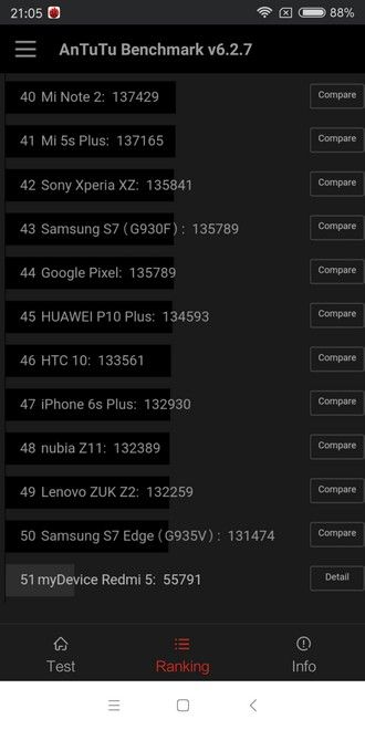 Da su neka druga vremena, baterija kapaciteta 3300 mAh na uređaju s 5,7-inčnim zaslonom ne bi ulijevala puno nade za dobru autonomiju. Kao prvo, površina zaslona dijagonale 5,7" u formatu odgovara otprilike onoj na dijagonali od 5,5" u omjeru stranica 16:9, a kao drugo, Redmi 5 pokreće procesor izrađen u 14-nm tehnologiji. Možda još da dodamo i treći faktor, a to je rezolucija zaslona 720p pa sve zajedno jednostavno ne može rezultirati autonomijom manjom od odlične. Tri sata nekrekidno uključenog zaslona s uključenom Wi-Fi vezom i osvjetljenjem na 50% su potrošila oko 30% kapaciteta baterije, a to je svakako izvrstan rezultat. Naravno, ako instalirate nekoliko aplikacija za čiji je normalan rad potreban rad u pozadini sa sinkronizacijom podataka, potrošnja će se povećati, ali samo najuporniji korisnici će potrošiti bateriju prije odlaska na spavanje.