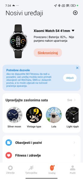 Povezivanje s telefonom (Android ili iPhone) odvija se putem aplikacije Mi Fitness. Proces je brz i intuitivan. Jednom uparen, Watch S4 nudi sve standardne pametne funkcije: primanje notifikacija, upravljanje glazbom i obavljanje poziva, pri čemu sat funkcionira kao Bluetooth zvučnik za vaš telefon. Kvaliteta mikrofona i zvučnika je solidna za kratke razgovore.