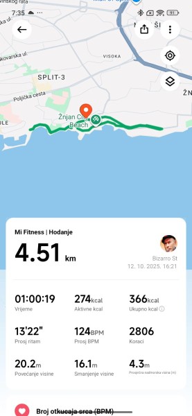 Najveća zvijezdaovog sata je autonomija. Čitavih tjedan dana intenzivnog korištenja i još nekoliko umjerenog, nije uspjelo isprazniti bateriju do kraja. U prijevodu, punjač viđate rjeđe nego kod konkurencije, ali i neke Xiaomi Wear OS modele. Nakon desetak dana sam zaboravio da sat uopće treba puniti pa sam skoro ostao bez praćenja sna tog dana. Srećom, tu je i brzo punjenje. Pet minuta na punjaču dovoljno je za barem jedan, ako ne i dva dana rada.